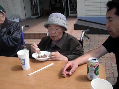 皆さんの食べっぷりを見ているだけで気持ちがいいですよ。いつもとは違って外で食べると一段と食も進みますね。食べている時の皆さんの満足そうな表情を伺う事が出来て、本当に良かったです。
