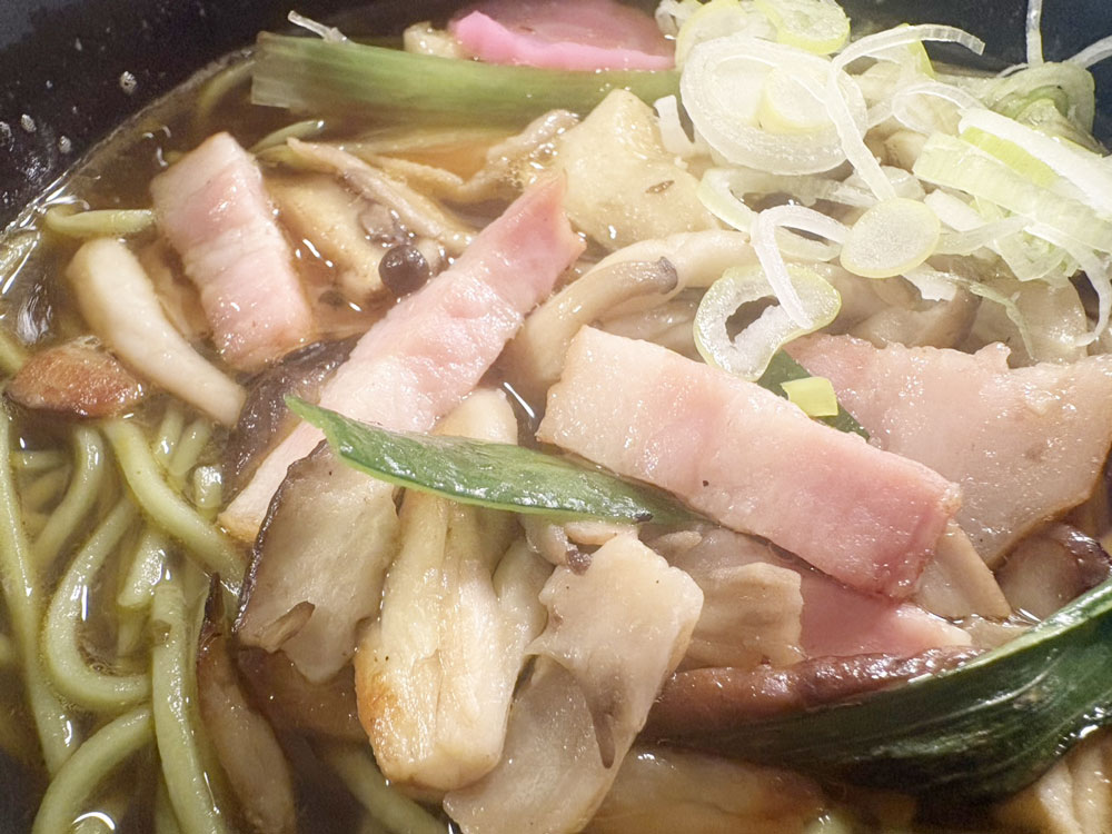 - ベーコンきのこカレー蕎麦
